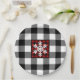 Black, White, Red Buffalo Plaid, Snowflake Paper Plate