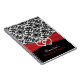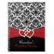 This romantic personalised black and white damask pattern wedding planner notebook has a red PRINTED ribbon and a pair of PRINTED red FAUX glitter and diamond jewel joined hearts on it that matches the wedding invitation shown below. It's a perfect way to keep track of your wedding plans and details. ****PLEASE NOTE that everything will print as it appears on your monitor, so if you have typos, alignment, or sizing issues, please contact me for help BEFORE you order. I can't help with anything once the order has been placed with Zazzle. If you need any other matching items, please email niteowlstudio@gmail.com.