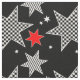 Black, white, red stars fabric. Cute geometric illustration, for adults and kids.