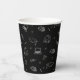 Trendy and charming black and white grad party patterned paper cups adorned with hand-drawn scribble-style illustrations - a graduation cap, laptop, backpack, books, coffee, pencil, diploma, and stars. © Kimbellished, LLC