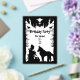 This Frosted acrylic Birthday Party invitation is black and white with Little Red Riding Hood kneeling under trees with birds talking to the wolf. Customise all the text with the templates.