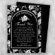 Elegant 40th birthday thank you card features a chic black and white rose floral background. A black arch edged in white contains the birthday celebrant's name written in a traditional script, 40th birthday and the date. A single white rose decorates the inside of the arch. All text is editable. This item is part of the Black and White Rose Floral Arch collection. It contains templates you can use to create a unique birthday invitation suite, welcome signs and party decorations.