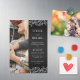 Magnetic photo wedding invitation in black with elegant white fonts and the lace-like outlines of hand drawn flower arrangements with roses and baby's breath. Add a photo on the front of the floral wedding invitation.