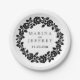 Black white rose wreath modern floral wedding paper plate. A lovely floral wreath made of black rose flowers on white background. This classy design has a vintage feel to it.