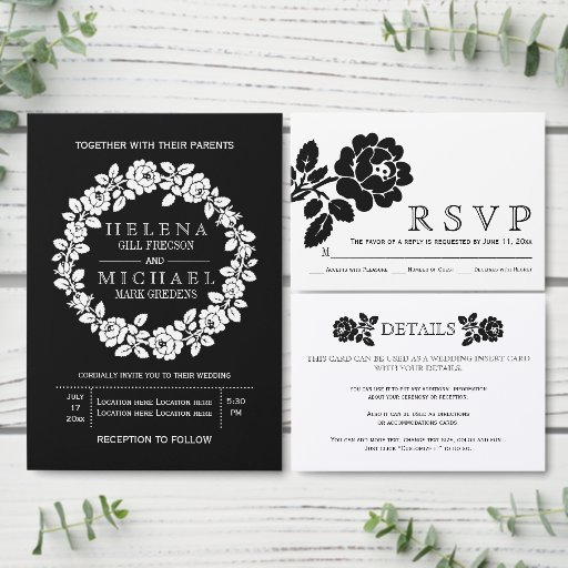 Rose wreath wedding invitation collectionDesigned by Modern Designs