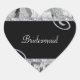 Black & White Roses & Diamond Swirls Wedding Heart Sticker