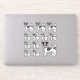 Destei's original cartoon illustration of a black and white rough coat Jack Russell Terrier breed dog. The design is placed 12 times on the sheet in three different sizes. There is one bigger dog, three medium size dogs and eight small size dogs.