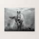 Black White Running Horse Freedom Jigsaw Puzzle