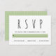 Modern black, white, green typography wedding RSVP response card. It features the word RSVP in black in a modern font and a band in sage green. The back includes a geometric pattern in white on sage green.