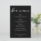 Simply chic and stylish, our formal minimalist wedding collection features elegant cursive typography for your modern event. Impress your guests with a formal evening wedding bar menu with simple white script on a bold black drinks list.