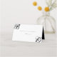 This design features the bride's and groom's initials as the main focus of the design. Personalised script initials using script font typography creates a perfect fusion of modern and elegance. A simple custom minimalist wedding place card design with modern black and white monogram. Matching wedding invitations and stationery items are also available. To re-position the initials please click "Click to customise further" link when personalising details.