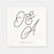 A beautiful typography based wedding napkin design featuring your initials in oversized soft black script lettering with your wedding date beneath in classic serif lettering.