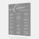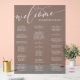 Acrylic seating chart printed transparent black with welcome in a swirly script and the seating chart in an elegant font. Works for any event. Seating chart sign printed on acrylic with a black-tinted background and white text. Welcome is printed at the top and you can add three columns of guests, sorted alphabetically so they can easily find to which table they're assigned. Dark smoky look acrylic seating chart sign for any event with white fonts.