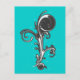 Image is from my digitally coloured ink drawing. There is a black and white swirl scroll on a aqua blue background. See my store Art by MAR for matching products with this design.