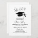 Black White She Did It Graduation Invitation. Elegant grad party invite features dainty script lettering, a black graduation cap with a sweet coquette bow tied ribbon. Your graduate's photo is featured on the back of the graduation party invitation with her class year. Easy to edit templates.