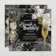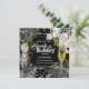 A beautiful square frame is edged with delicate watercolor roses in black which form a border around black templates and faux sparkling silver glitter sequins and jewel strands. The corners have delicate soft faux black and silver foliage and a single satin silvery white bow with a diamond gem inlay appears along the right corner above a glass of sparkling bubbly wine. This elegant and chic shabby french chic look is ideal for a bridal shower; birthday party or special wedding anniversary celebration. Simply personalise the wording to suit your special occasion or event and change the background colour to any of your choice.