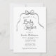 Black White Simple Bow Baby Shower Invitation. A trendy cute hand-drawn style bow and ribbon paired with whimsical and fun fonts. Simple yet playful. Shown in black and white, but you can choose all new colours for the backgrounds, design elements, and text. Personalise the readymade template with all the necessary event information to effortless customise your baby shower invitations. © Kimbellished, LLC