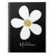 A pretty simple daisy design in white on a black background with an elegant gold center.