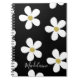 A pretty simple daisy design in white on a black background with an elegant gold center.