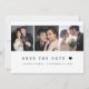 Black White Simple heart Modern 3 Photo Wedding Save The Date
