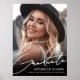 This simple and minimalist graduation party sign features a full-page photo with a black gradient at the bottom, overlaid with white text for a sleek and modern look. "Graduate" is displayed in elegant handwritten script, with the graduate’s name, "Class of 2026," and the school name below in classic white serif fonts, ensuring a bold and readable design.