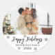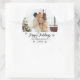 Black White Snowflake Family Photo Happy Holidays Classic Round Sticker