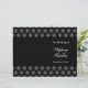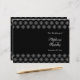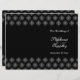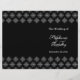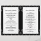 This stylish chic wedding template program has an elegant black background with a white snowflakes damask design on the top and bottom. On the front right, you can easily customise the names of the bride and groom along with the date of your wedding ceremony. On the backside, you can personalise the inside of the program with your own text. Please keep the paper type on the 80lb. selection to be able to fold it much easier.