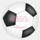 These cute soccer themed birthday party thank you stickers are fully customisable and feature the realistic image of a soccer ball that has black and white panels - personalise with your custom text in your preferred colour, currently pink - by katz_d_zynes