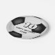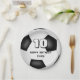 These soccer themed birthday party paper plates are fully customisable and feature the realistic image of a soccer ball that has black and white panels - personalise with your custom text - by katz_d_zynes