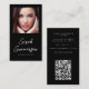 Make a lasting first impression with this elegant black and white business card design, featuring a customizable photo on the front with your name in a modern script font. The clean, minimal layout highlights your personal brand while keeping the focus on your professional image. Add your contact information, title, and social media details on the back for a sleek, organized presentation. Also customize the QR code to lead to your website. Perfect for creatives, beauty professionals, entrepreneurs, and anyone who wants a timeless design that stands out with style and confidence.
