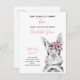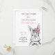Your baby girl is turning two! Invite your special guests with this adorable invitation postcard featuring a hand painted watercolor bunny rabbit, in pink, black and white. Baby's name, "Two" and the date are in pink hand lettered script typography, and personalised in a chic modern black sans serif. Copyright Elegant Invites, all rights reserved.