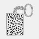 Stylish Dalmatian spots pattern with a faux gold foil label featuring customisable name and monogram templates. A cute monogrammed keychain with black and white spots pattern and golden elements. To change the font colours and font styles click the "personalise" button and then click the "customise further" button.