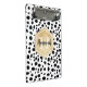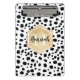 Stylish Dalmatian spots pattern with a faux gold foil label featuring customisable name and monogram templates. A cute monogrammed mini clipboard with black and white spots pattern and golden elements. To change the font colours and font styles click the "personalise" button and then click the "customise further" button.