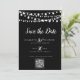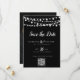 Black and White String Lights Modern Script Save the Date Template for you to customise. Add your beautiful, photo to the back of the Invitation/Announcement.