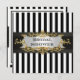 This customisable design features black and white stripes, a black ribbon, and a white gradient label in a gold look frame.