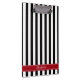 Black and White Stripe Pattern, Cranberry Red Ribbon Name Monogram Label