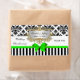 Black White Stripe Damask Lime Green Bow Ribbon Party Wine Label