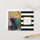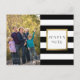 Stylish "Joyeux Noël" personalised photo Christmas postcards with black and white striped background & gold foil effect frame. Upload your family photo, add your Christmas message & send a personalised holiday postcard to friends & family this year!