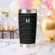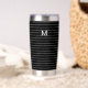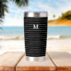 Black White Stripe Pattern Modern Simple Monogram Insulated Tumbler