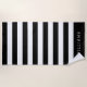 Preppy chic personalised beach towel features classic wide black and white stripes, with your name or choice of personalisation along the bottom in bold white lettering.
