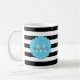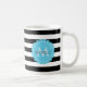 Black, White, striped Blue flower monogram name. Coffee Mug