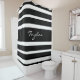 Black White Striped Monogram Name Custom Elegant Shower Curtain