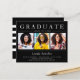 Black White Stripes 3 Photo Graduation Invitations