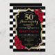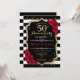 Elegant black white red design with faux glitter. Black and white stripes with red roses. Perfect for an elegant party.