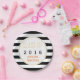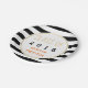 Black white stripes Class of 2016 trendy graduation paper plate. A black and white striped pattern, the word “Class of” in gold in a thin font, the number 2016 in black and your name in coral are the elements of this graduation design.