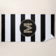 Black White Stripes Elegant Gold Name Monogram Beach Towel