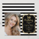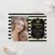 Black White Stripes Gold Photo 50th Birthday Invitation