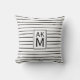 Black & White Stripes Pattern Monogram Pillow