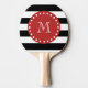 Black White Stripes Pattern, Red Monogram Ping Pong Paddle