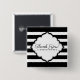 Black & White Stripes Pattern- Thank You 15 Cm Square Badge